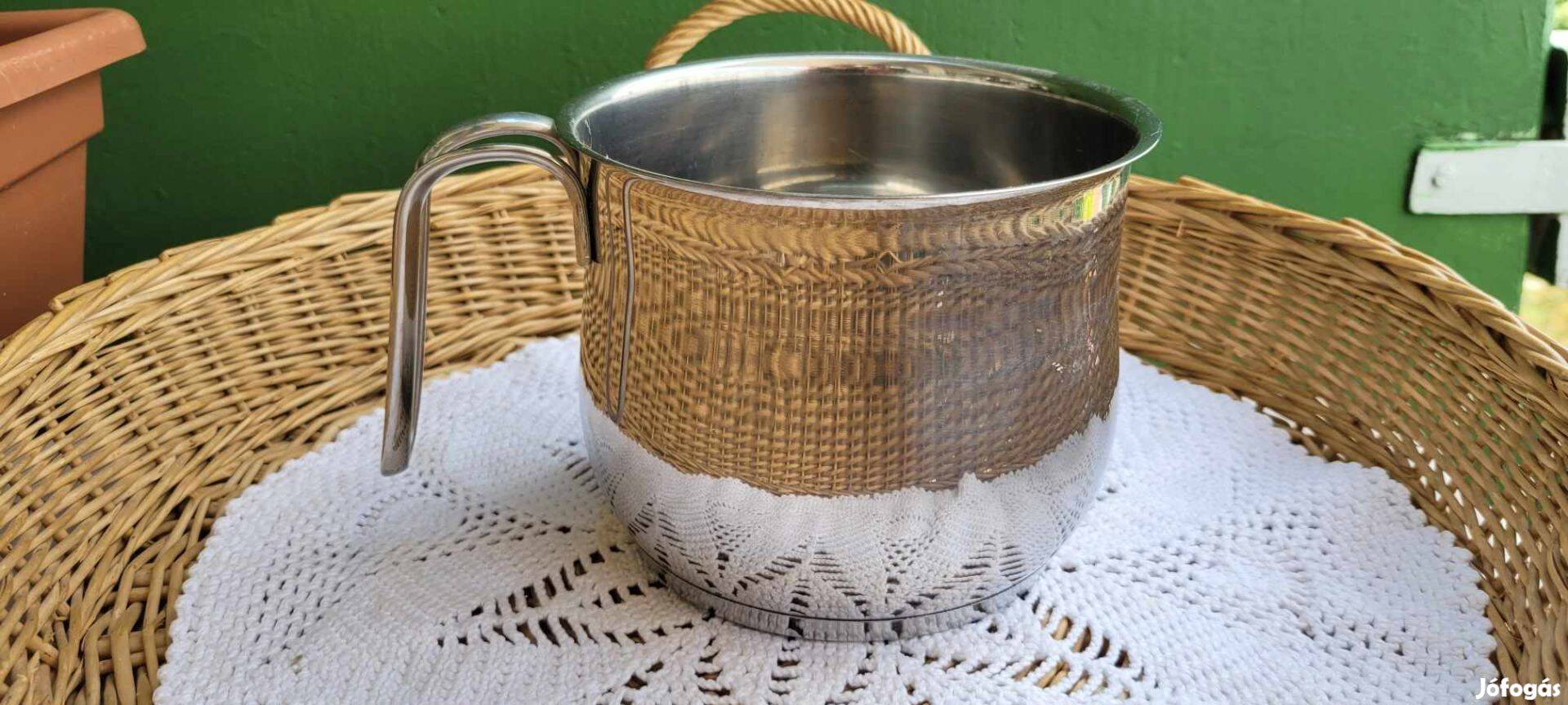 Eladásra kínálom a képen szereplő vintage WMF Transtherm Cromargan 18/10 rozsdamentes acél tejforralót. A képek magukért beszélnek. Körbe fotóztam. Szép, alig használt állapotban. Súlya van, minőségi edény. Indukciós tűzhelyen is használható.