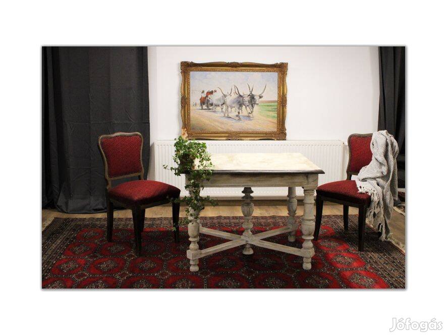 Vintage, ónémet asztal, krétafestékkel festve, antikolva