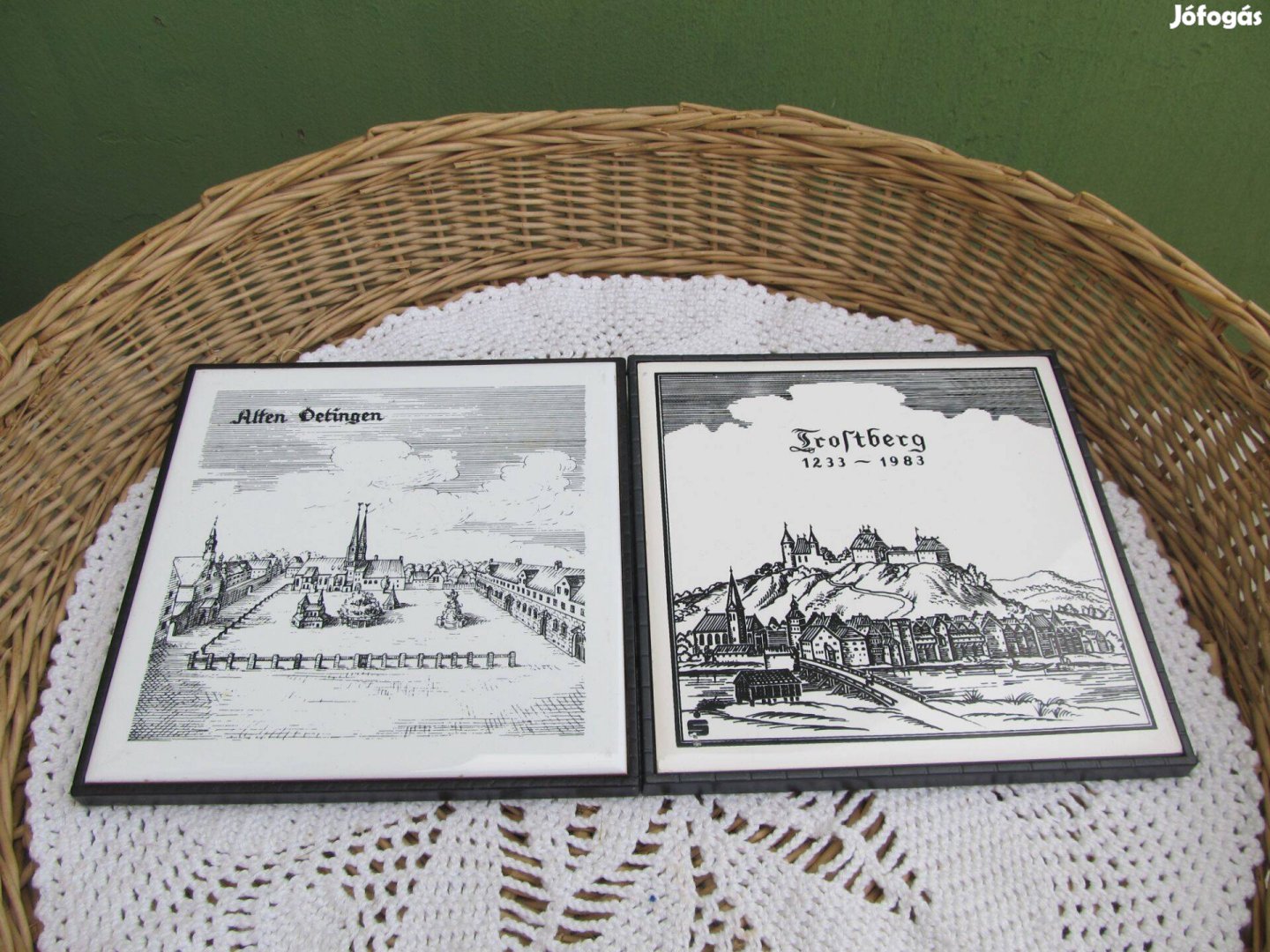 Eladásra kínálom a képen szereplő jelenetes díszcsempéket . A képek magukért beszélnek. Körbe fotóztam. Műanyag a keret, az egyiket vissza kell ragasztani. Jelzettek, Megadott ár a 2 db-ra vonatkozik.