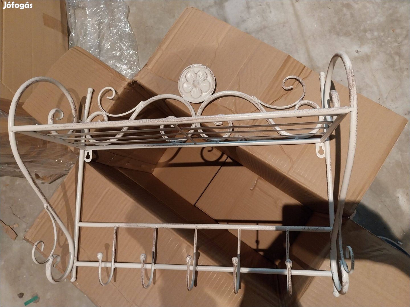 Vintage stílusú fém falipolc eladó, a színe fehér antikolt. Átvehető Budapest XX. kerületben. 47x38x18 cm-es, egyik része picit sérült, fotón látszik.