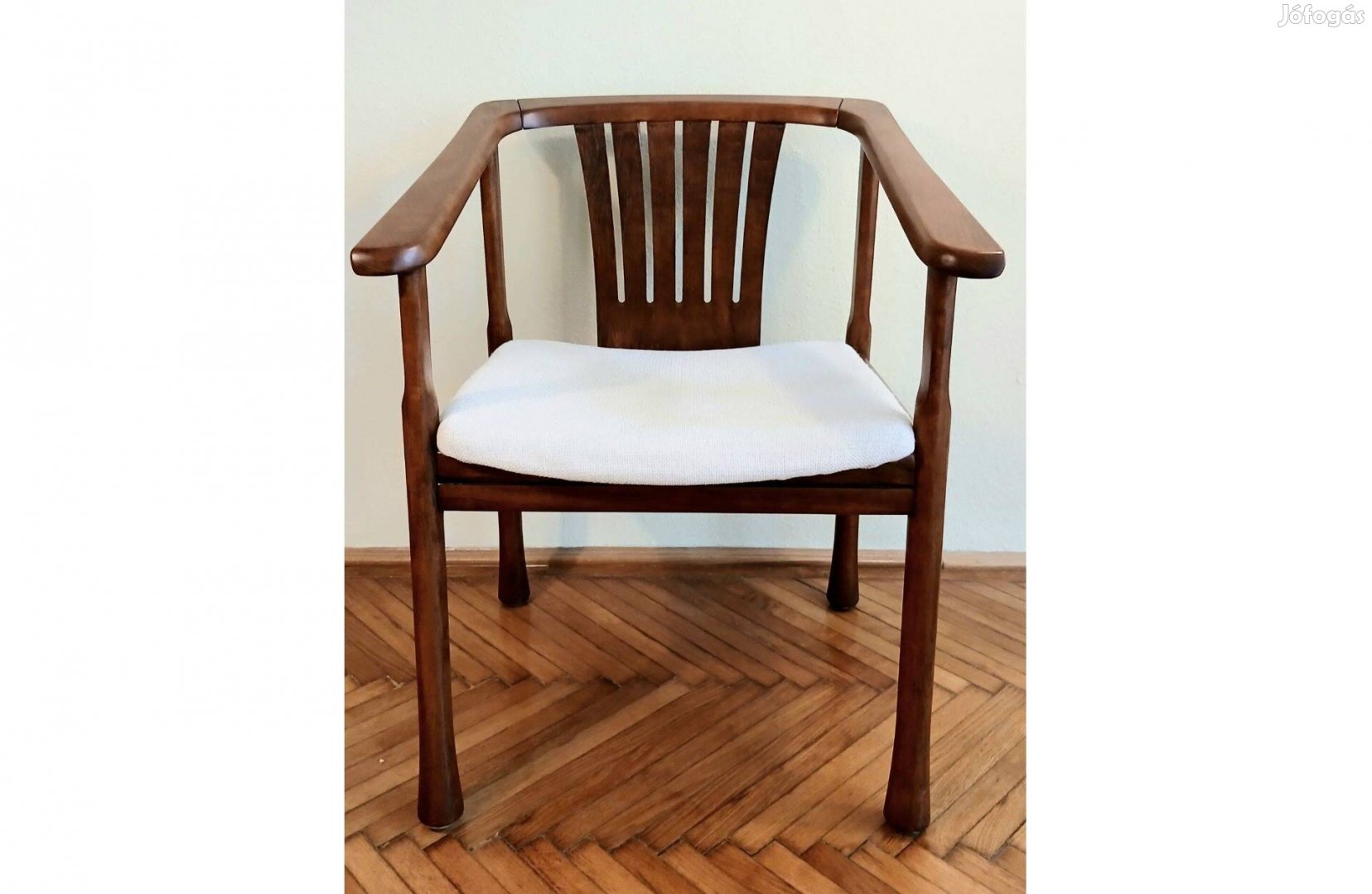 Eladó egy Magyarországon gyártott vintage szék. Gyönyörű, tartós és nagyon kényelmes. Az ülőfelület újra lett kárpitozva, a lakkja pedig restaurálva. Csak személyes átvétellel, Budapest VI. kerületében található. Költözés miatt eladó; kérem tekintse meg a többi hirdetésemet is. Naponta fogom feltölteni. Írjon SMS-t, ne hívjon.
