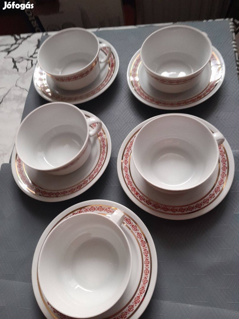 Alföldi porcelángyár által még a szocialista időkben gyártott teáskészlet, hibátlan 5 db csésze és 6 db tányér