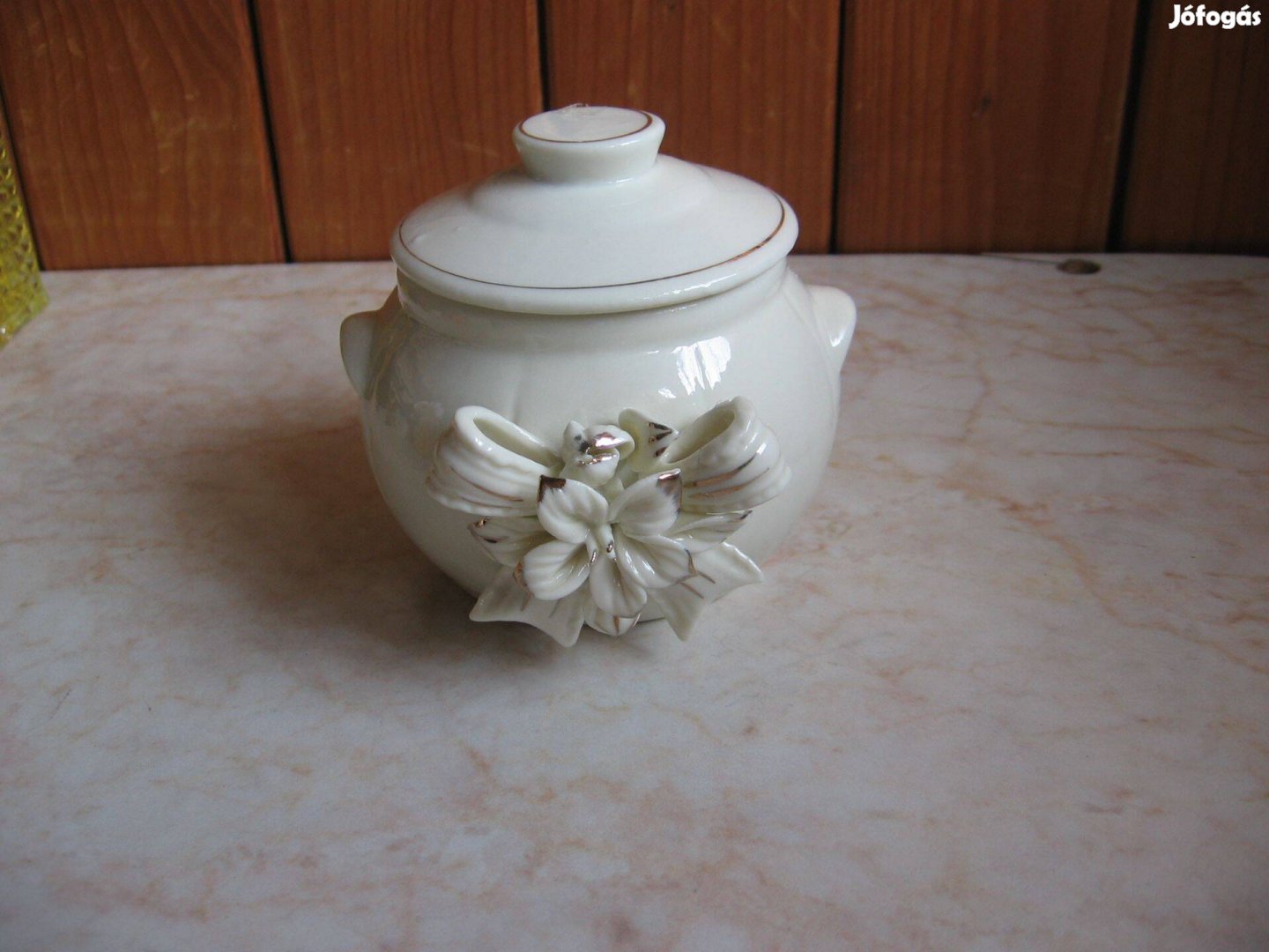 Virágos, fehér porcelán tároló