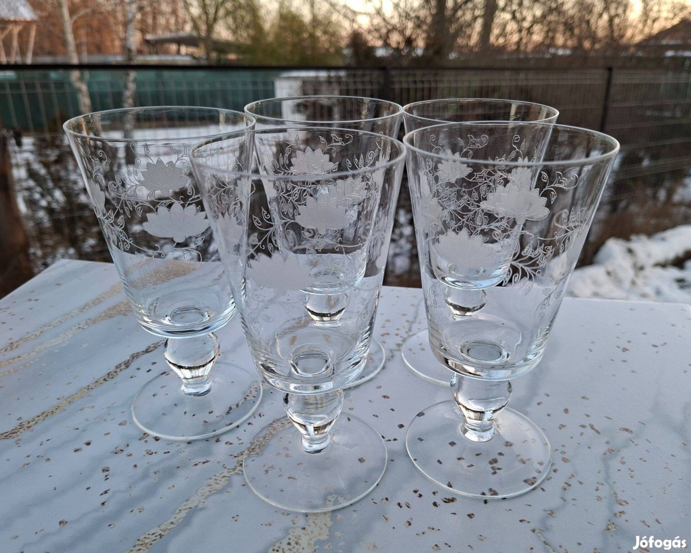 Virágos csiszolt üveg pohár eladó