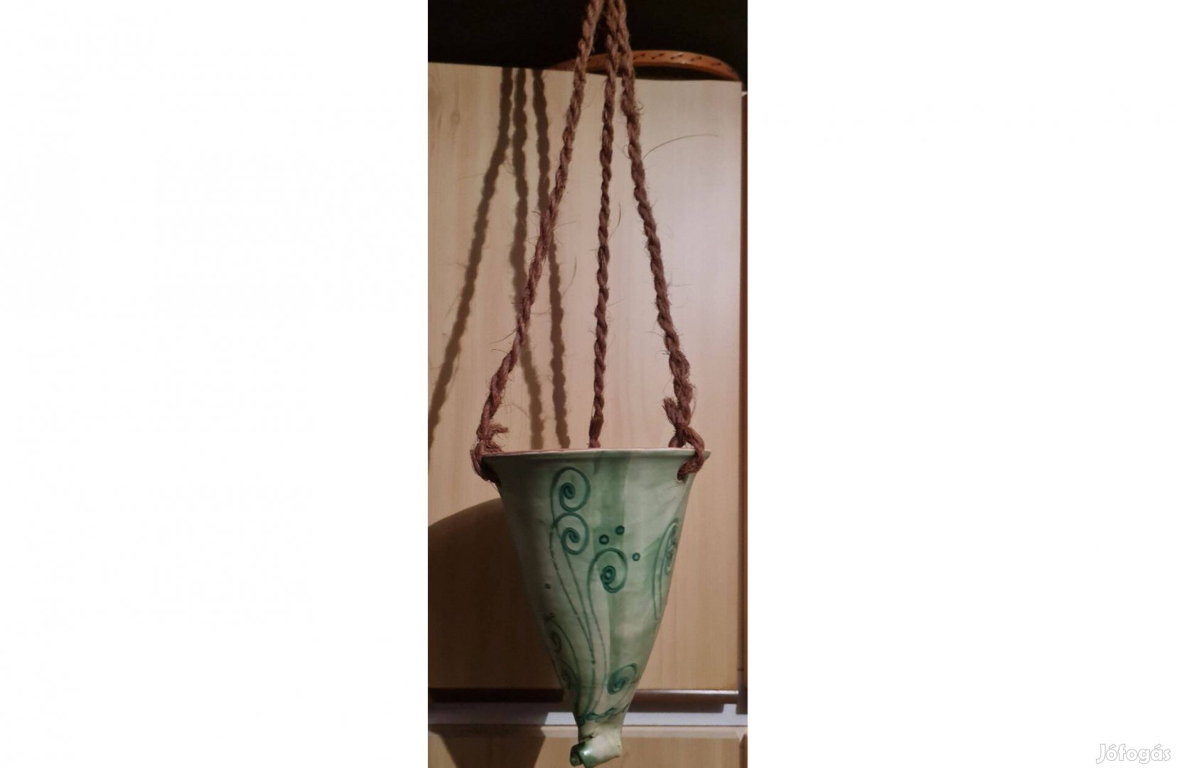 Eladó egy zöld színű Gorka függő kerámia virág kaspó. Átmérője 17 cm, a hossza 23 cm.
