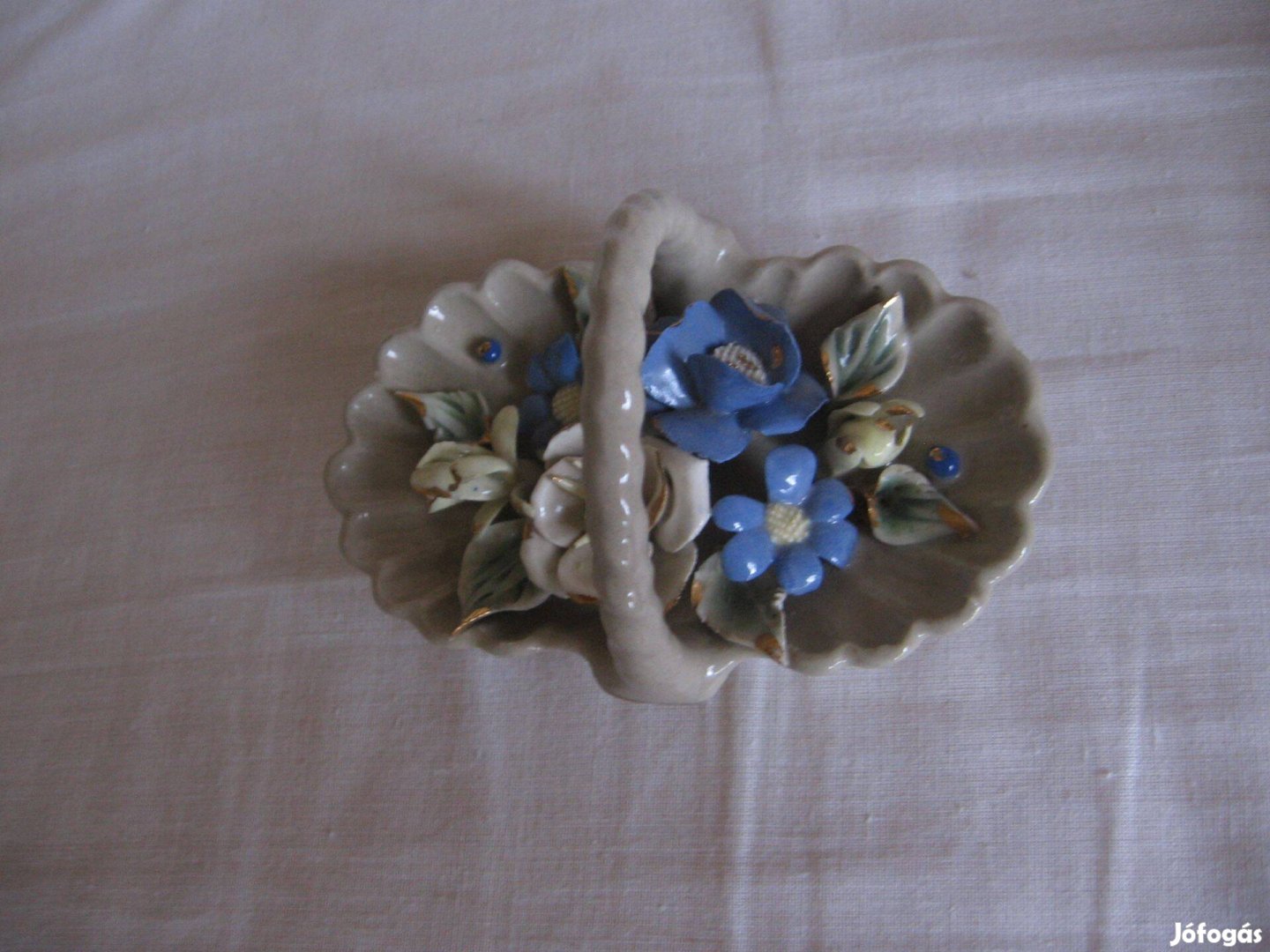 Vitrintárgy porcelán kosár