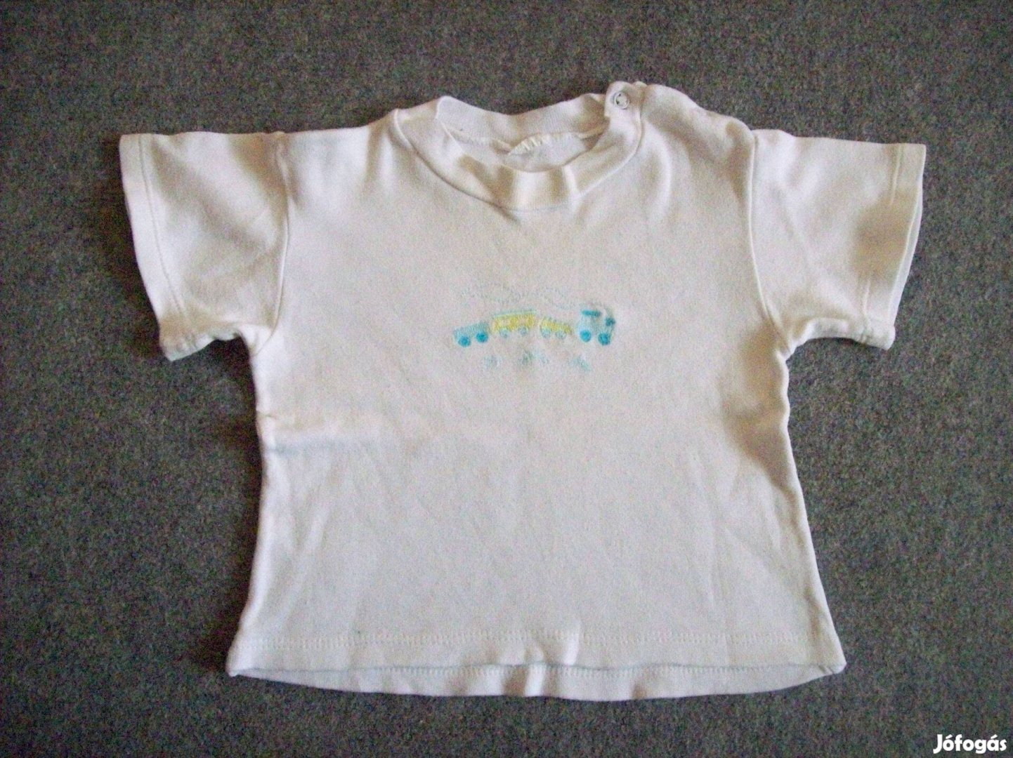 Vonat mintás fehér póló 6-9 hónaposra (méret 74)