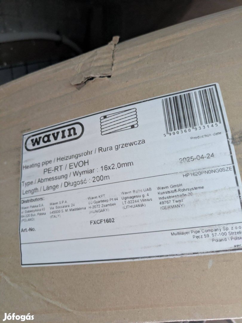 Egy tekercs Wavin PE-RT padlófűtéscső 16x2 200m Fxcf1602 eladó