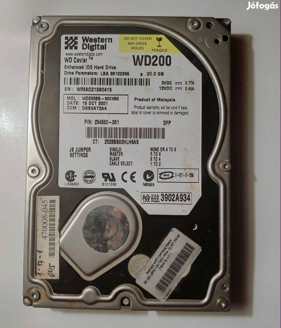 Western Digital WD200 Caviar HDD 20GB IDE-s (2001) tesztelve