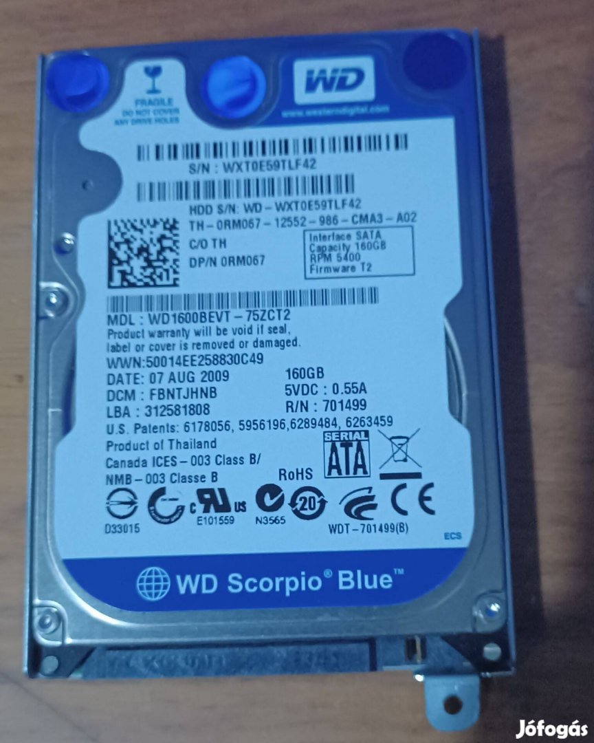 Western Digital (WD) Scorpio Blue Merevlemez (HDD) 160GB Laptop