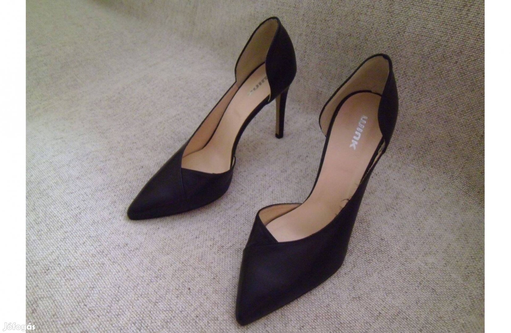1-2 alkalommal hordott, teljesen újszerű, magassarkú fekete cipő, 37-es méretben.