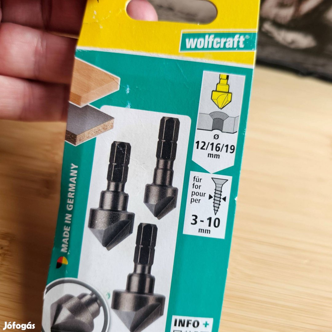 Wolfcraft süllyesztő készlet, 8-12-16 mm, bitbefogás új dobozos