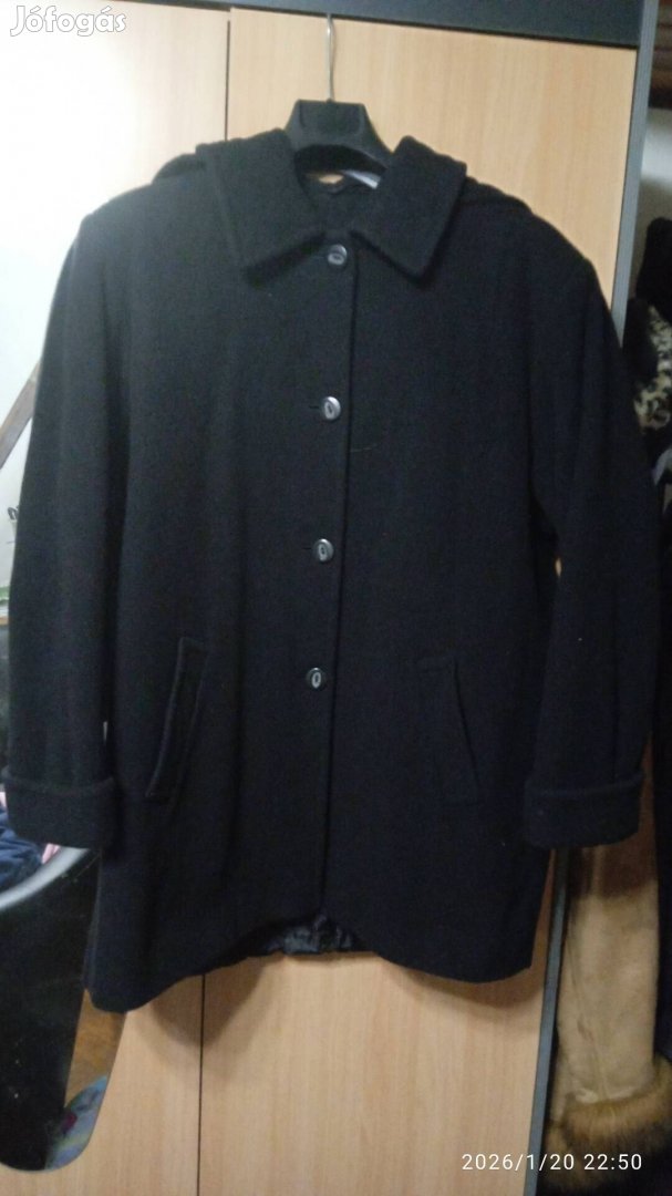 XL méretű fekete gyapjúszövet télikabát olcsón jó állapotban