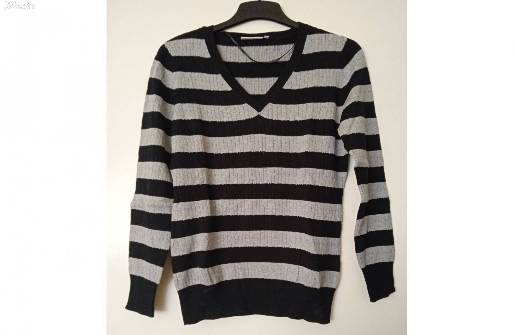 Teljesen új, még nem használt, V-nyakú, szürke-fekete csíkos, kötött, 100% pamut pulóver.