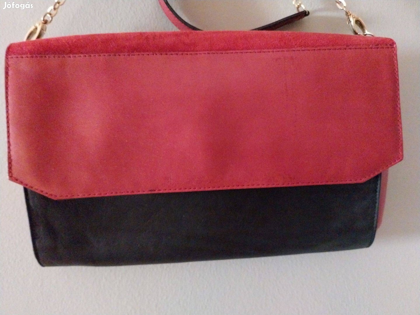 Zara oldaltáska, tiszta bőr borítéktáska, bordó-fekete