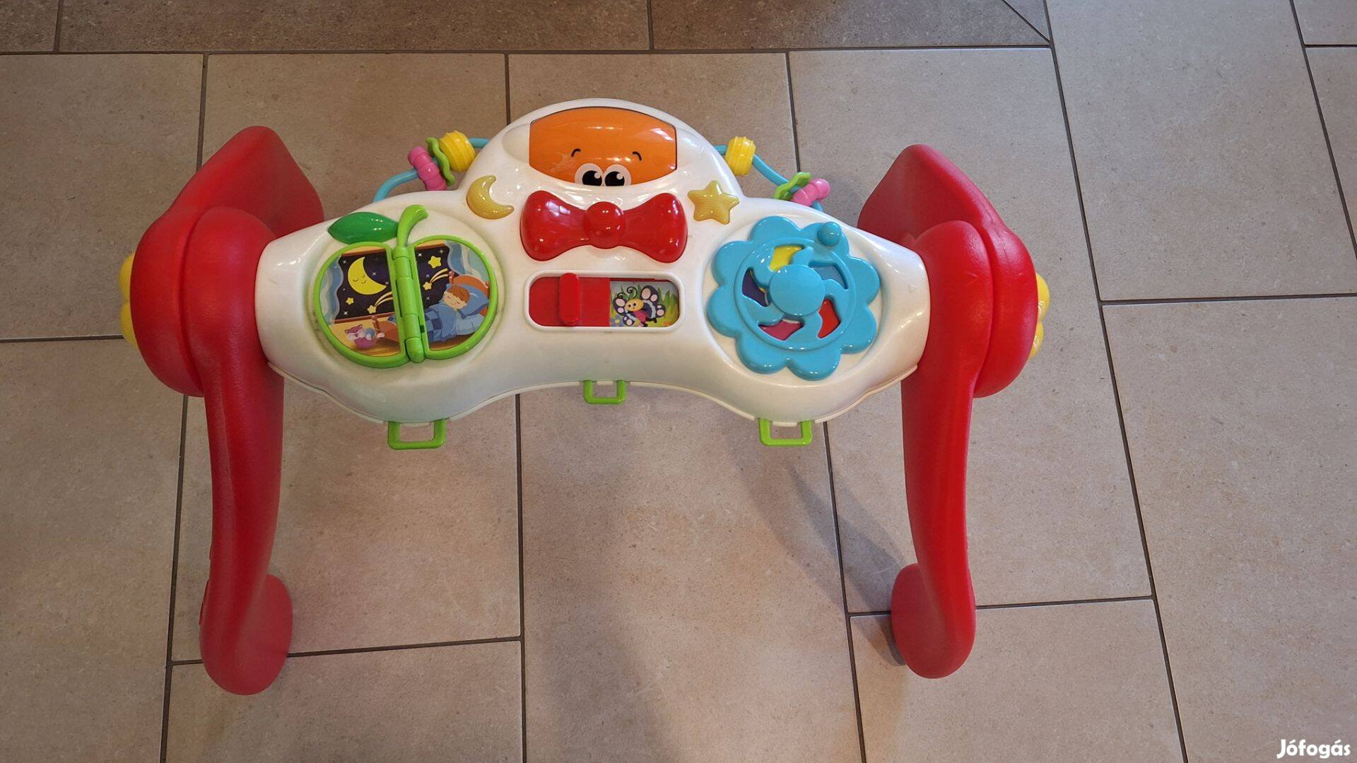 Eladó a képeken látható zenélő babajáték. Vannak rajta különböző formájú gombok, van amit lapozgatni kell, van amit tekerni kell, illetve van oda-vissza húzós rész és görgetős rész is. Ezek mind különböző hangokat adni ki vagy zenélnek. Lábakon áll, amelynek a dőlésszögét lehet állítani, ezáltal a magasságát is. Átvétel lehetséges elsősorban Budapest XIX.kerületben, illetve egyeztetés után IX, X, XX, XIV, XVII, XVIII kerületekben és Gödöllőn.