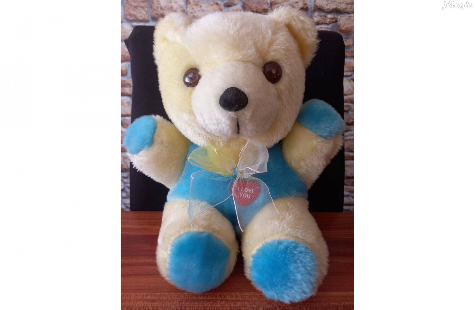 Eladó a képen látható új állapotú elemes zenélő puha plüss 30cm-es mackó , mellén I love you felirattal, melyet ha megérintünk zenélni kezd, szemei világitanak, villogva.