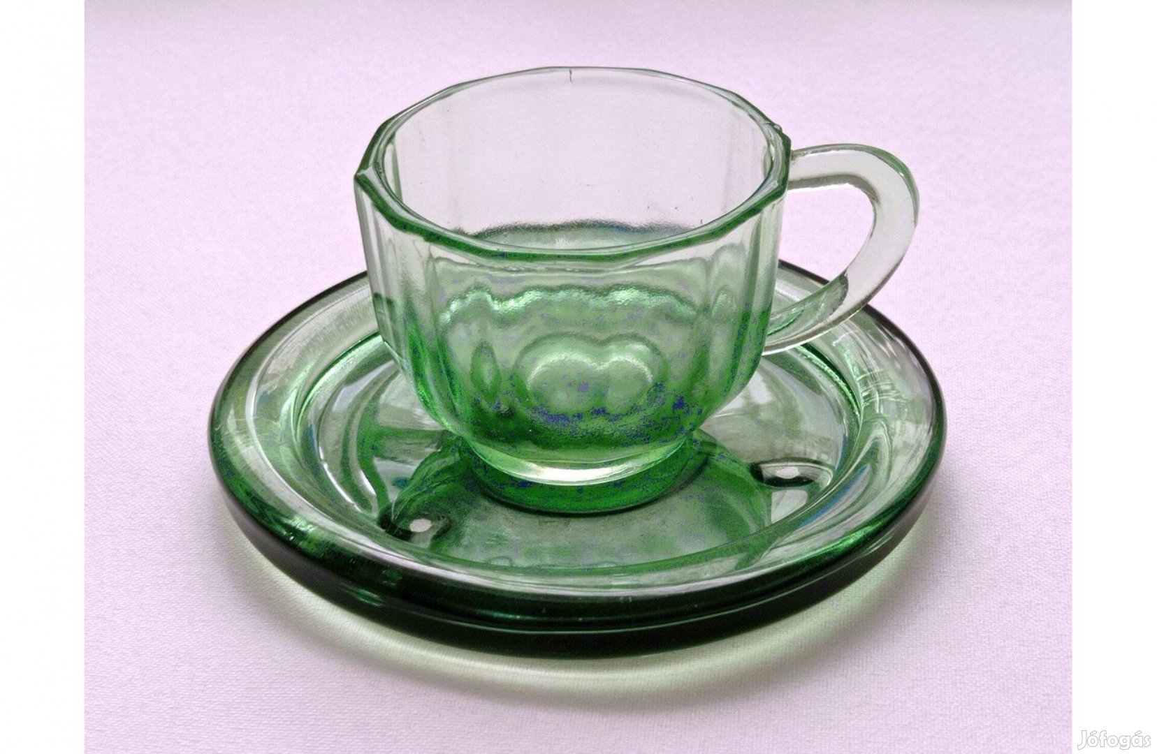 Zöld Durit üveg kávés pohár, zöld üveg alátéttel * 450 Ft