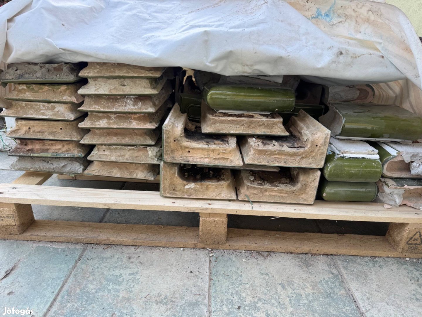 Zöld kandalló eladó szétszedett állapotban, 1db virágos és 4db ülőke elem sérült.