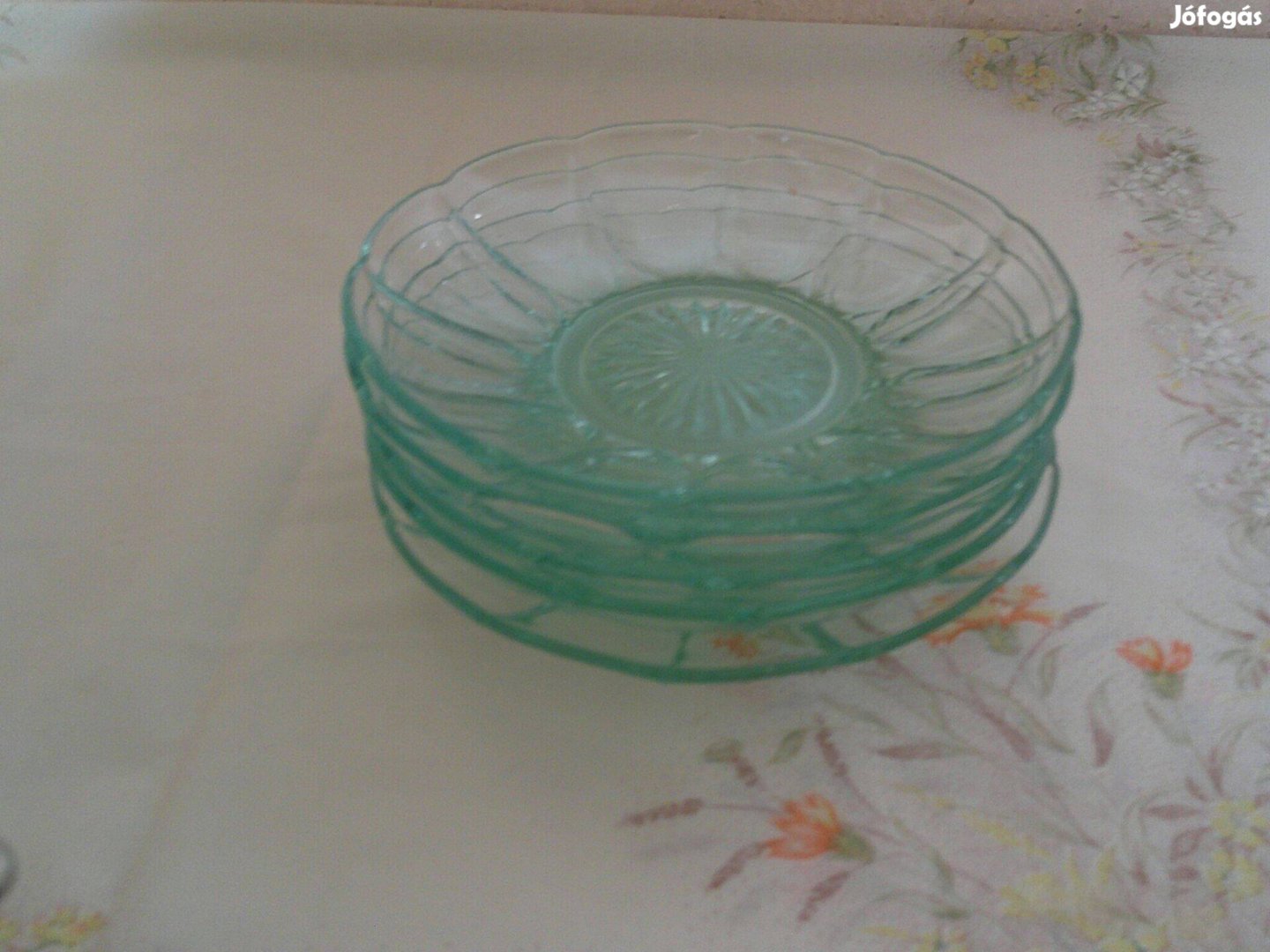 Zöld színű üveg süteményes tányér ( 5 db. )
