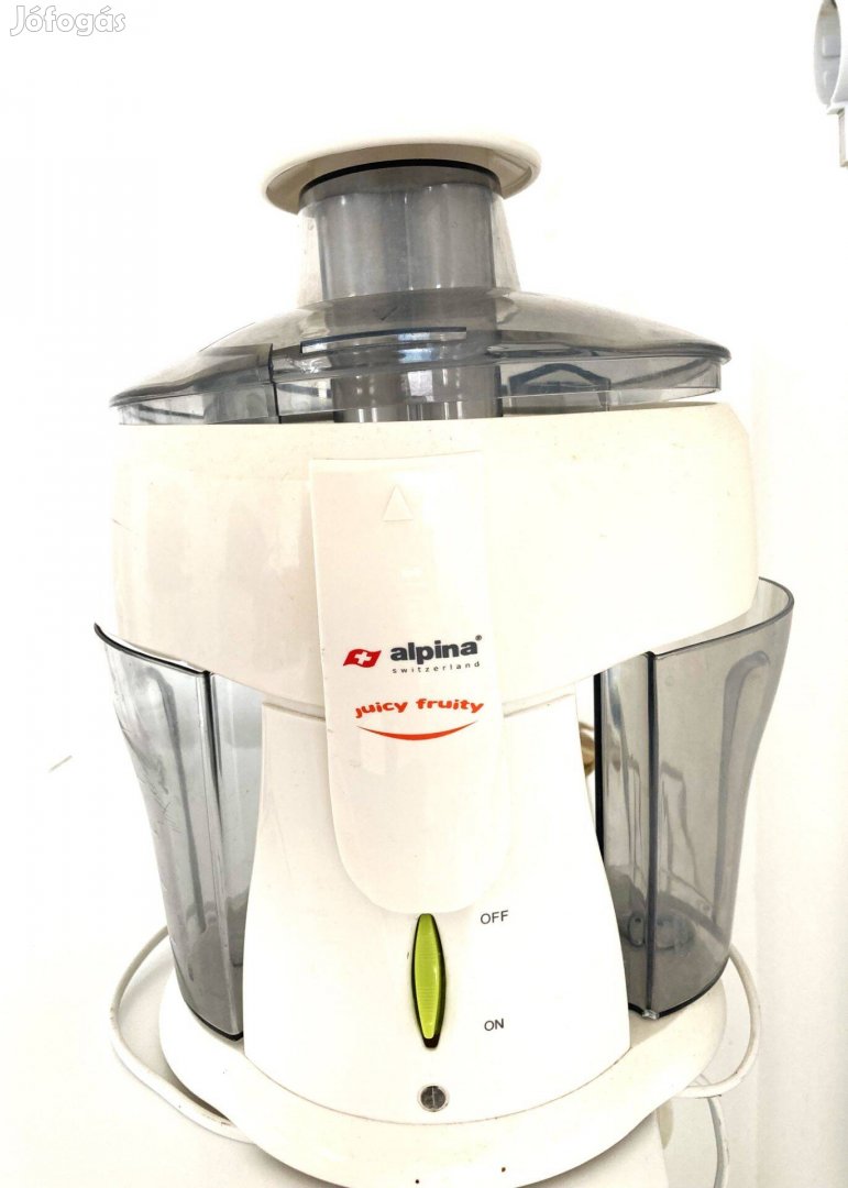 Nagy sebességgel forgó kések , felaprítja es egy szűrőn átpréseli a gyümölcsöt: kész a vitamindús házi készítésű gyümölcslé.