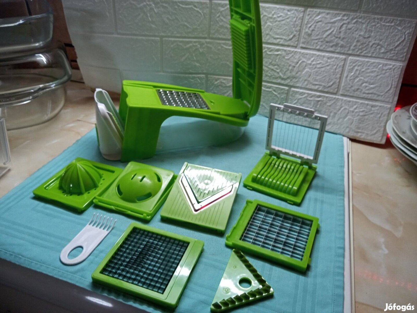 Eladó a képeken látható kézi multifunkciós zöldség , gyümölcs, szeletelő, vágó, reszelő, aprító.8 db rozsdamentes cserélhető pengével. Új, dobozában soha nem használt.Csak személyes átvétellel Kispesten. Ára:10.000ft Érdeklődni