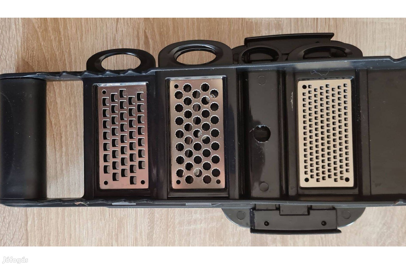Eladó egy alig használt zöldség, gyümölcs, sajt, citrusfélék szeletelő készlet. Anyaga rozsdamentes acél és fekete műanyag. További leírás a képen.
