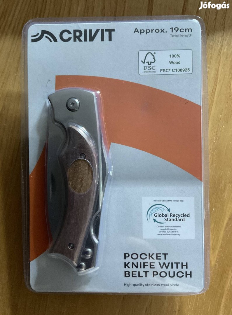Zsebkés tartóval. Ajánlott túrázáshoz, kempingezéshez.