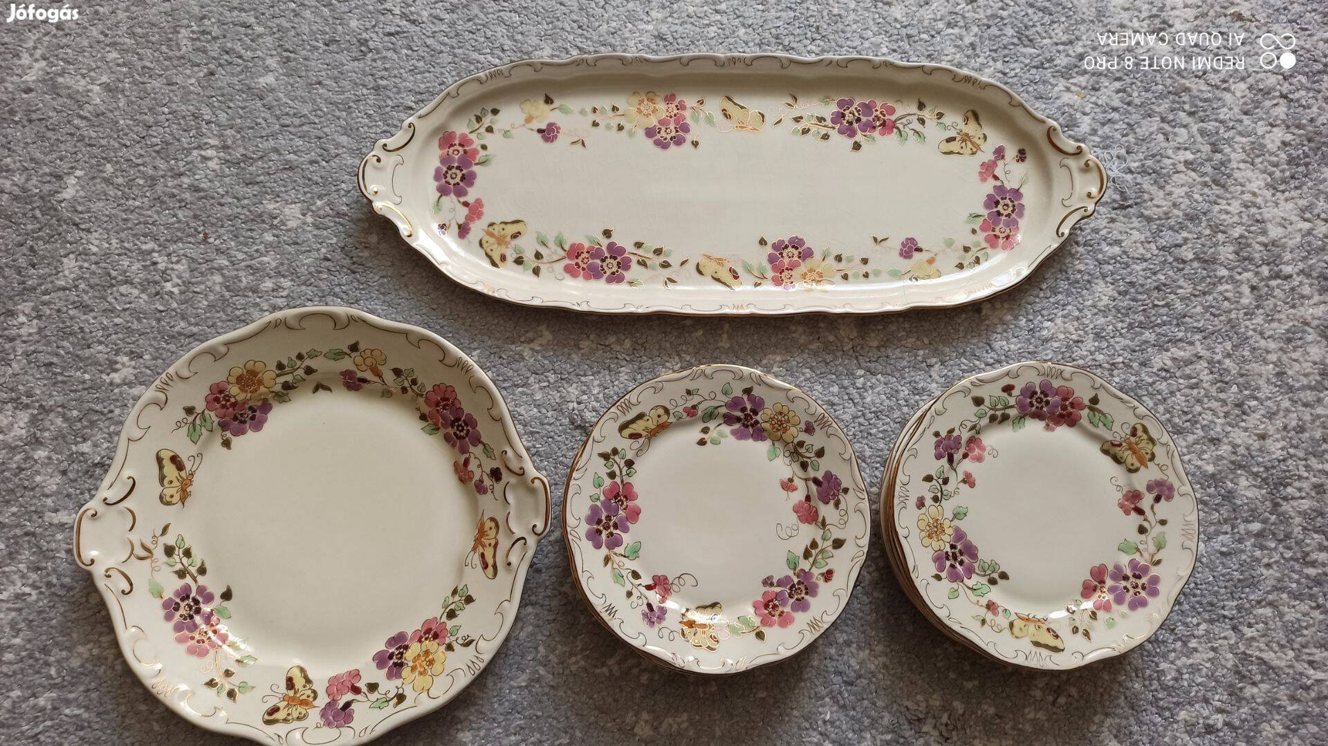 Zsolnay 12 személyes pillangós süteményes szendvicses tányérkészlet