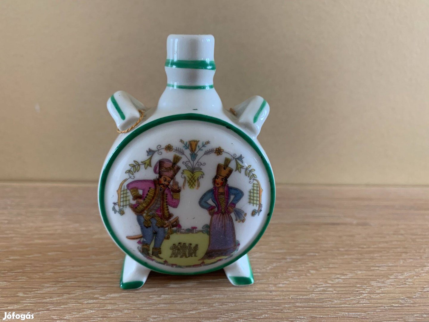 Zsolnay kisméretű porcelán kulacs népi motívummal