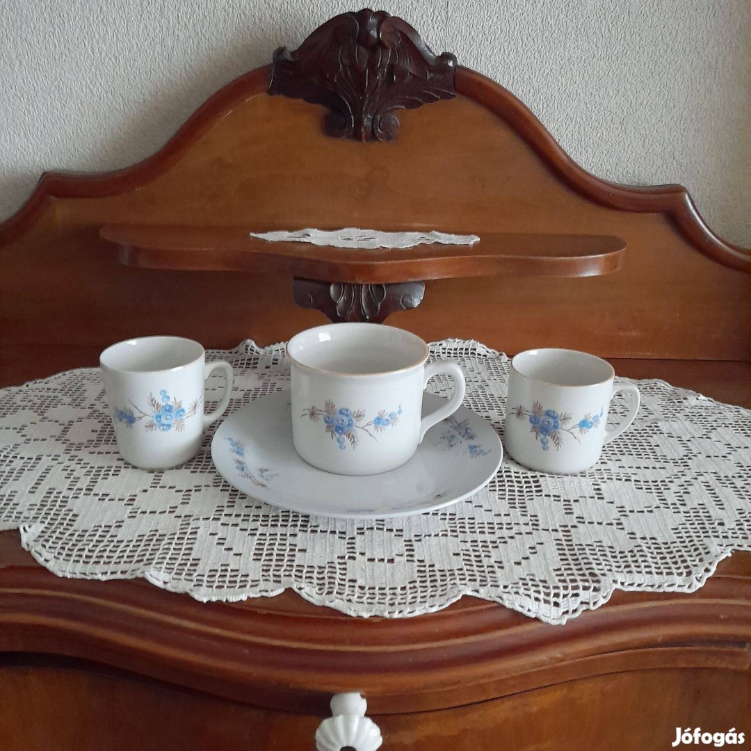 Zsolnay porcelán tányér és bögrék áfonya bogyó mintával. Szépen öregedett tiszta tárgyak összesen 4 db.