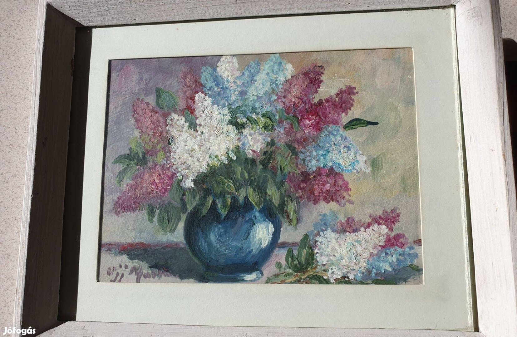 Zsűrizett Nagybányai Olaj csendélet lila virágokkal