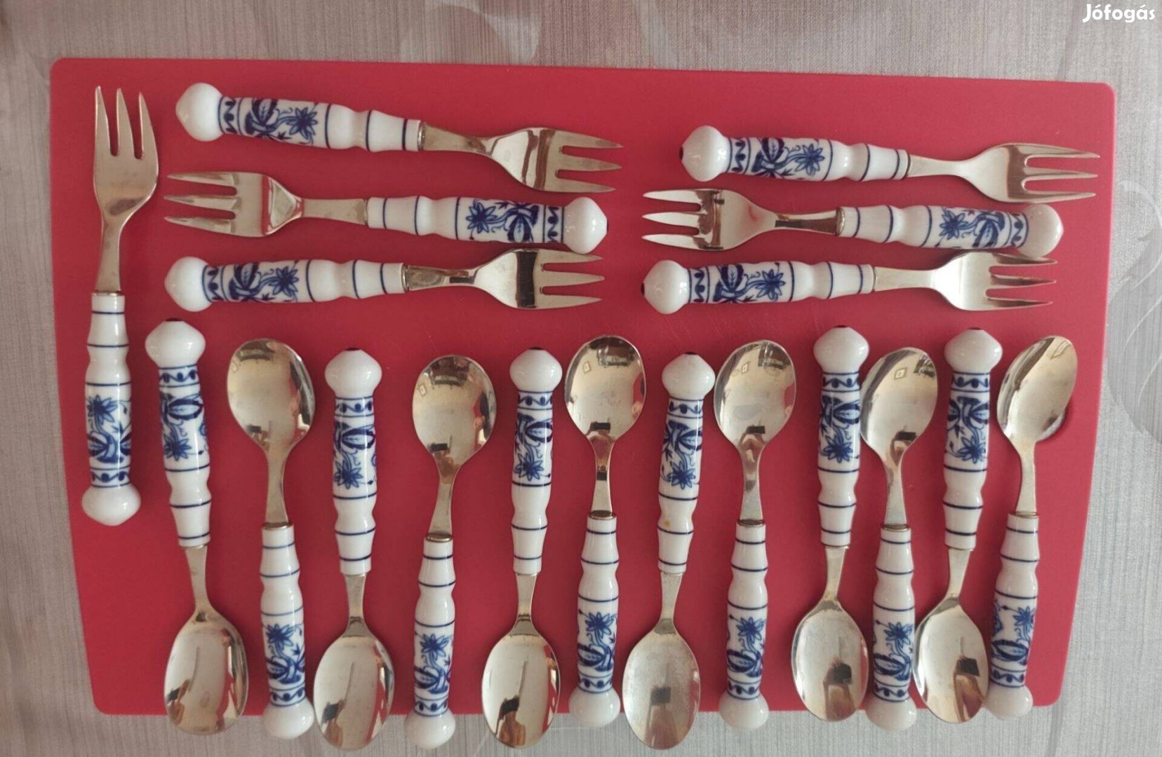 Zwiebelmuster (hagymamintás)porcelánnyelű kiskanál és süteményes villa