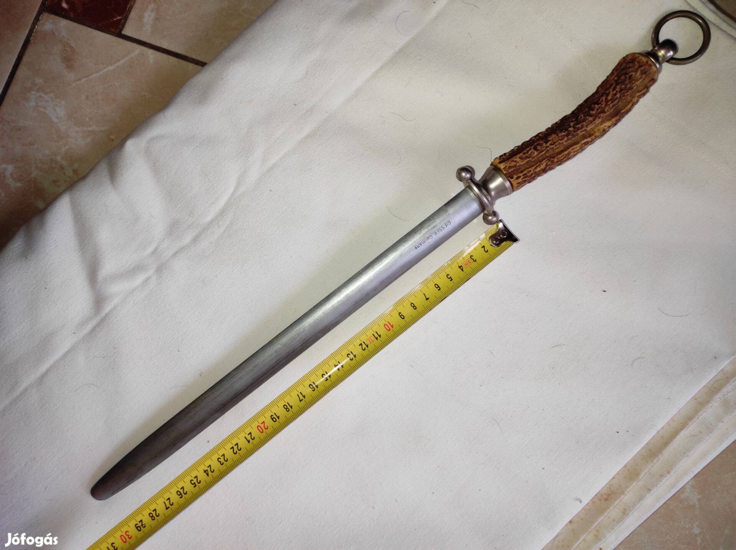 "Giesser" Fenőacél-késélező- 2 db eladó....látványos, Egyedi kivitel Szarvasagancs nyél(!) , -acél 31 cm, nyéllel 46 cm,- 14 500.-Ft, Alkuképes !