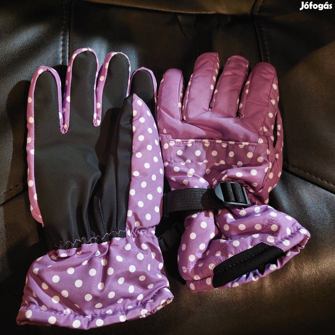 Acélszürke Gyapjú Kesztyű. Lilapöttyös Kesztyű.