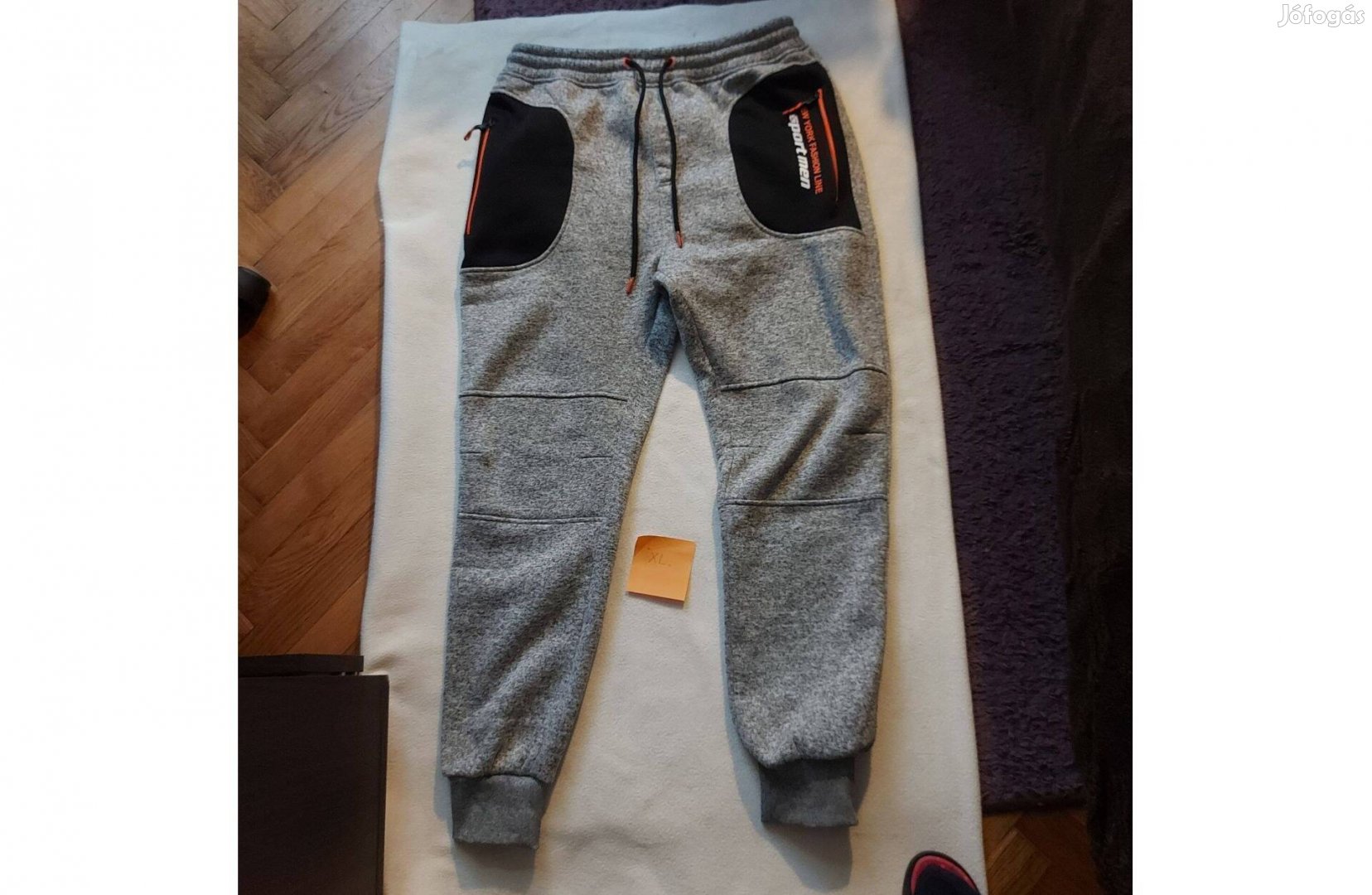 "XL"-es méretű szűrke alapszínű férfi szabadidőnadrág