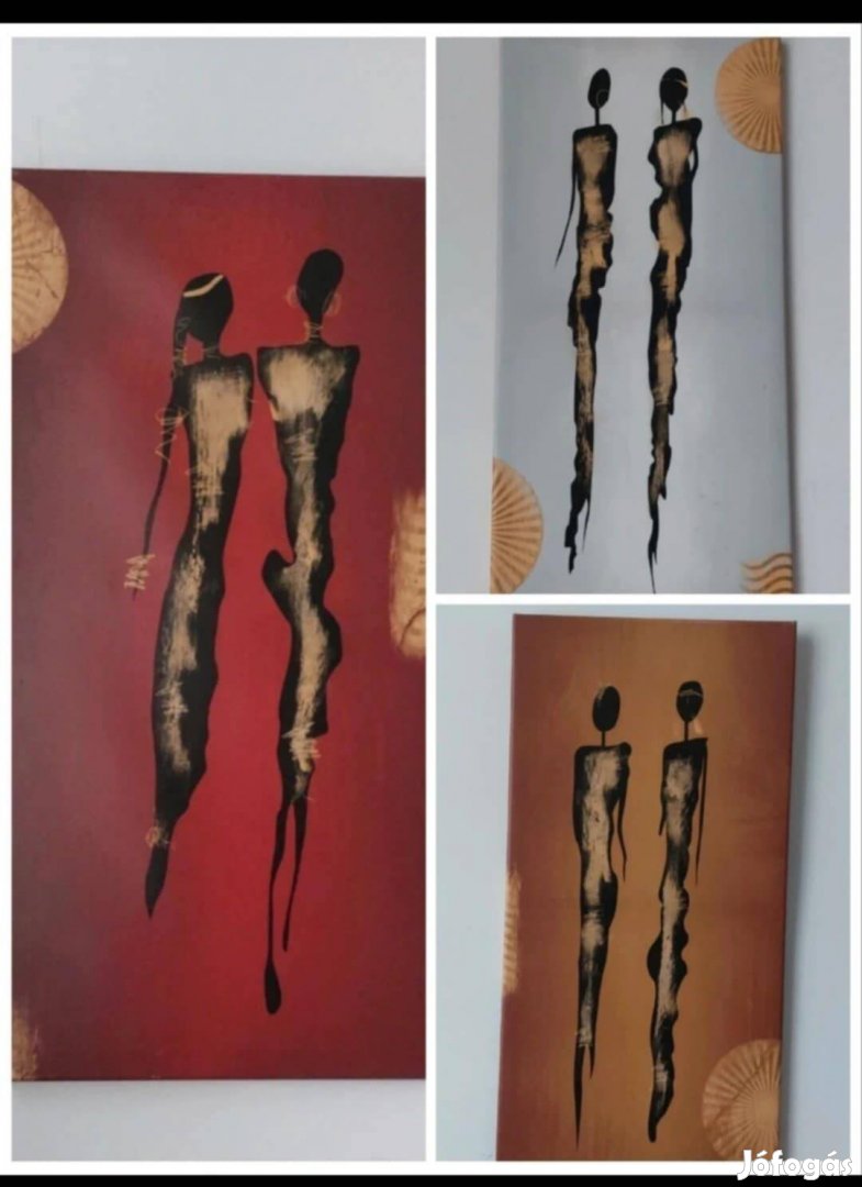 Afrikai stílusú,absztrakt női alakos feszített vászon keretes falikép. Mérete darabonként 40x80 cm. Minőségi termék, nem Temus, itthon lakberendezési üzletben vásároltan. Csak személyes átvétel a 13. Kerületben,mérete miatt nem tudom postázni.