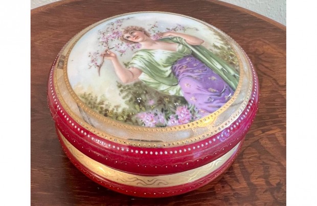 Antik porcelándoboz Királyi Porcelánmanufaktúra Bindenschild
