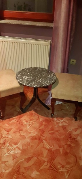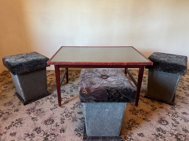 Kisasztal, 2db puff székkel