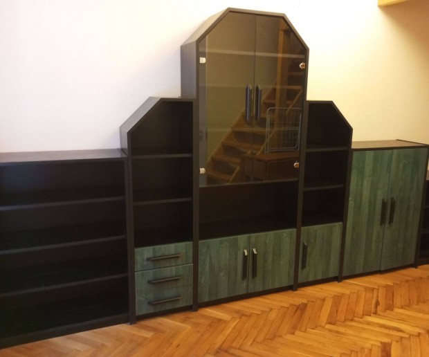 Szekrénysor, fekete-zöld színű