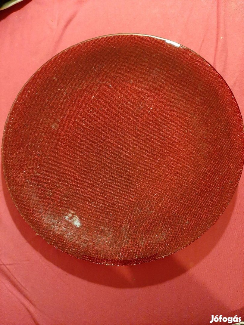 33 cm átmérőjű óriási, mutatos bordó üveg kínáló tál. Nem repedt, nem törött, nem csorba