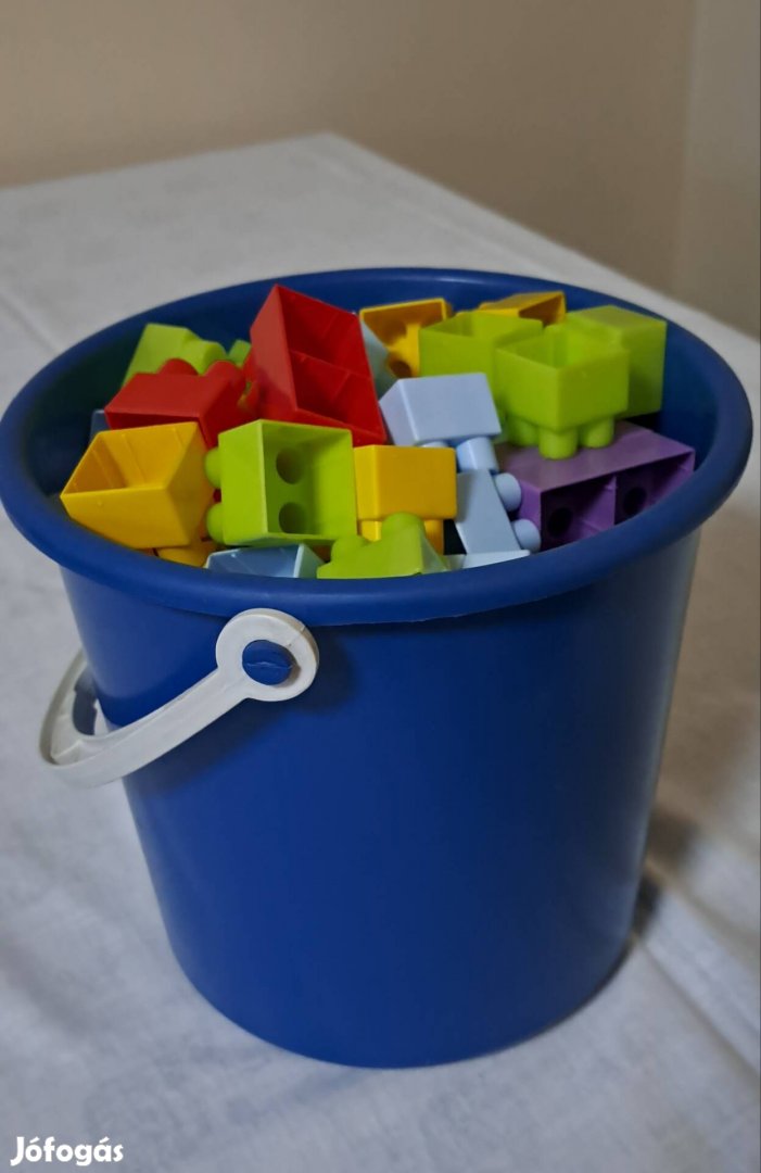 Eladó a képen látható 100 db. műanyag építő kocka vödörben.