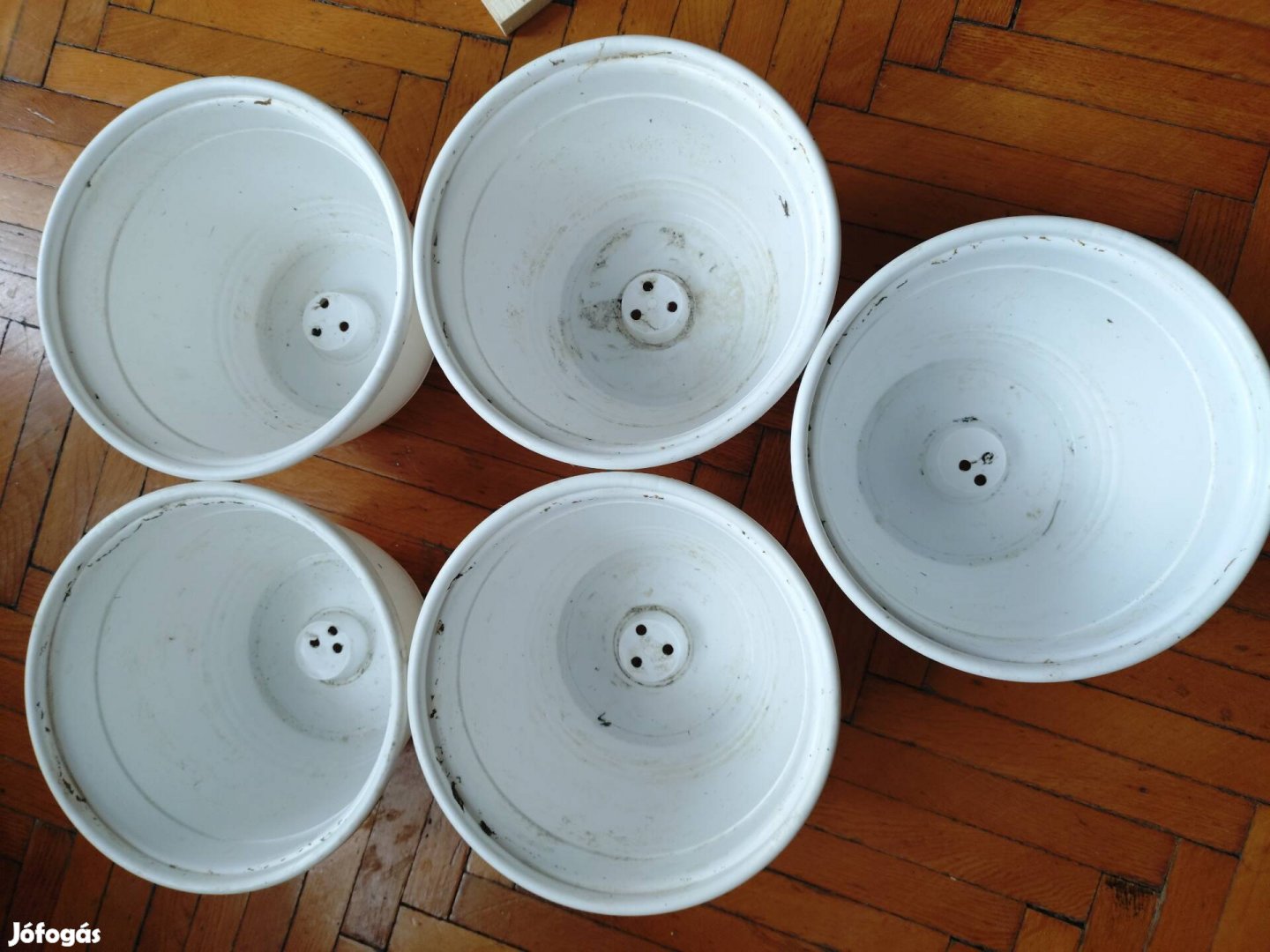 A képeken látható, 5 db alig használt, teljesen jó állapotban lévő, műanyag felfüggeszthető kaspók eladók. Az ár együttesen az 5 db-ra vonatkozik.
