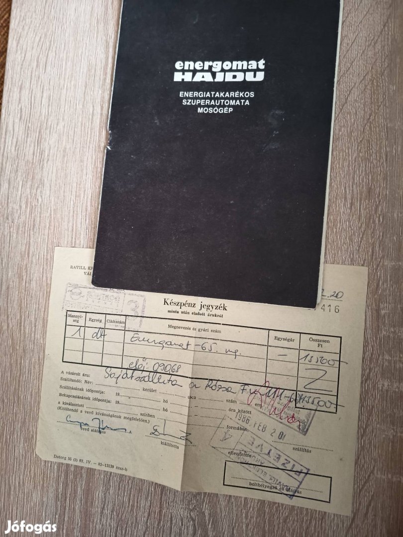 Eredeti hajdu energomat garancia jegy és az eredeti szamla 1986 bol.