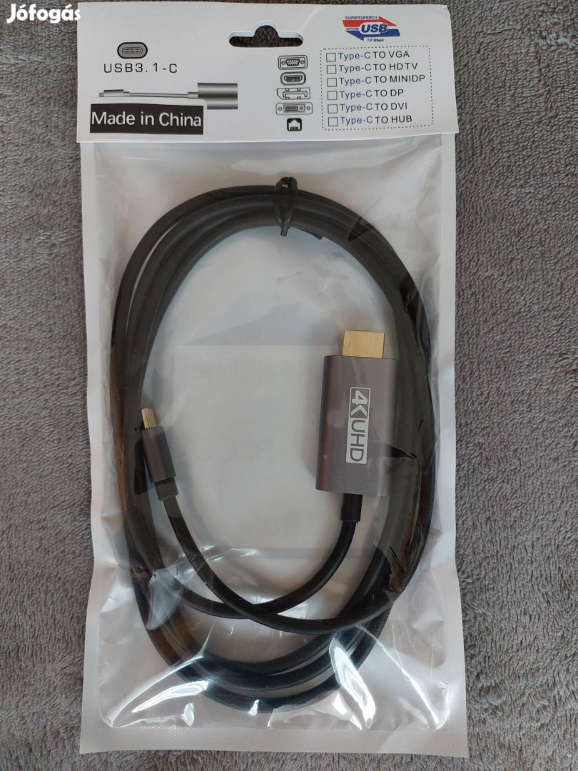 hdmi-usb c átjátszó kábel, 180centiméter hosszú