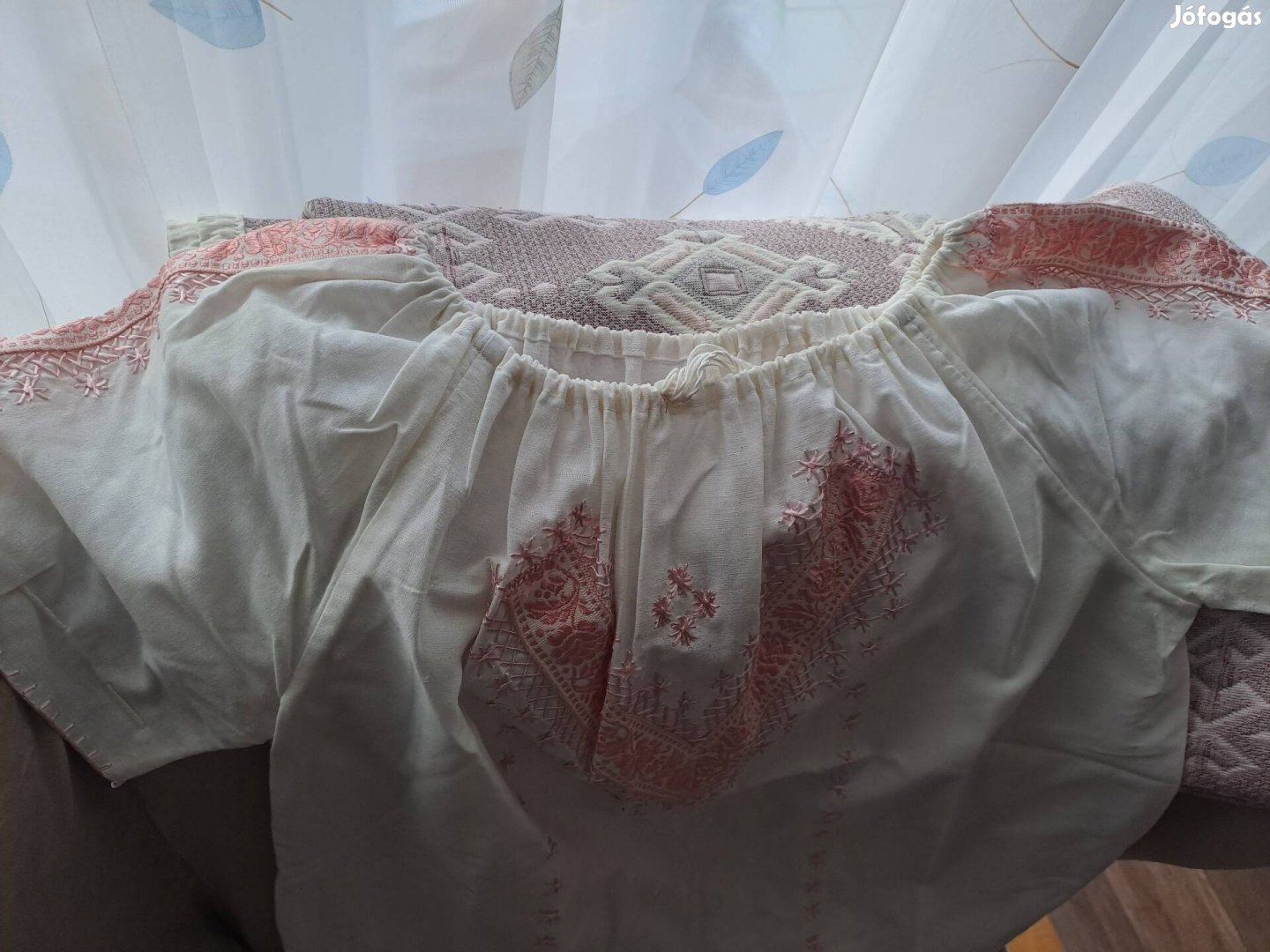 Elado nagyon szep es elegans feher bluz rozsaszin himzessel. Neptsnchoz is ajanlom
