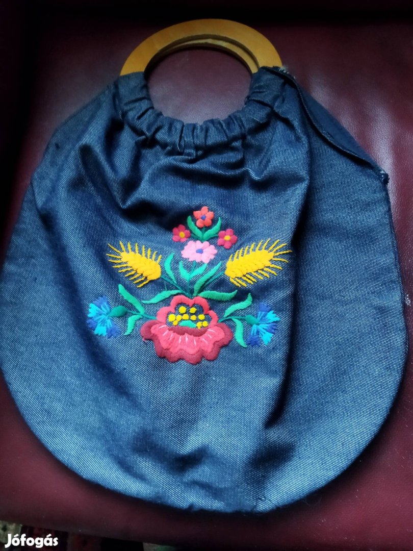 Eladó Budapesten Zuglóban a képeken látható hímzett farmer kézitáska. Méret: 40x36cm fogantyú nélkül.
