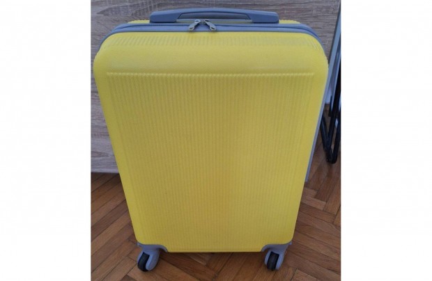 Sárga, 4 kerekű, keményfedelű bőrönd, olasz