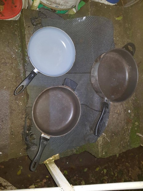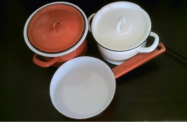 Retro bonyhádi edény (fazék, serpenyő) szett 3 db