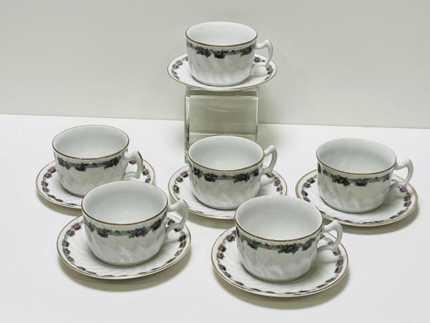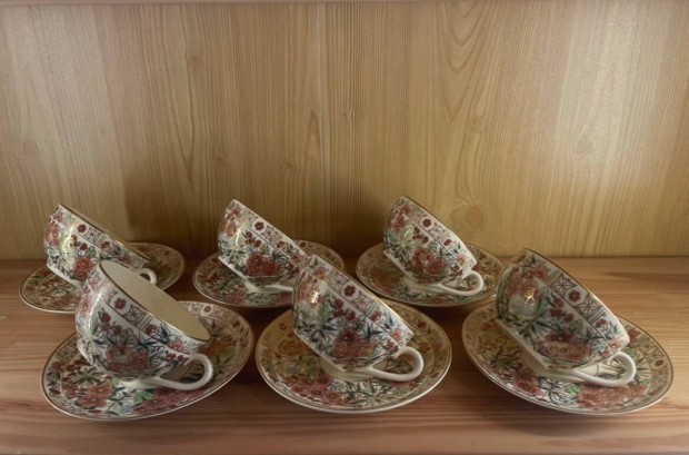 Antik Zsolnay ibolyás-rózsás teáscsészék